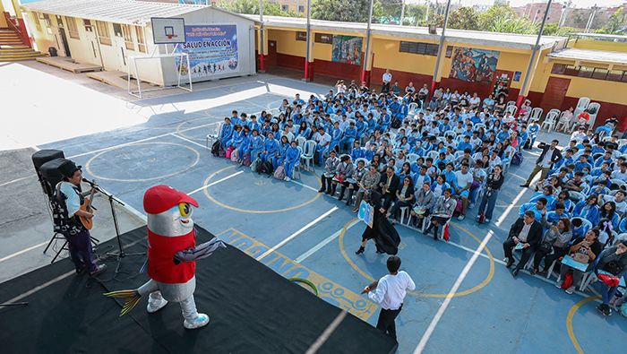 En las ceremonias que la autoridad sanitaria realizó en los colegios para la designación de los líderes también se sensibilizó a un total de 2550 alumnos sobre las cinco claves de la inocuidad con la obra de teatro Un cuento de inocuidad.
