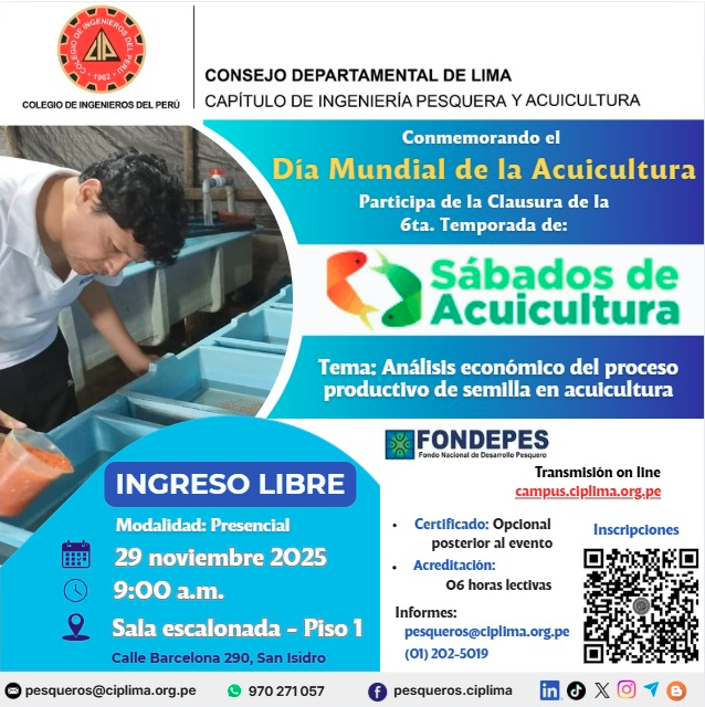 El Capítulo de Ingeniería Pesquera y Acuicultura del CDLima CIP en alianza